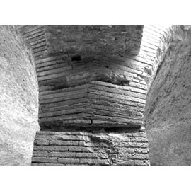 Reconstruction of the order from the façade of the porticoes in the Forum of Augustus made from original pieces and resin moulds
