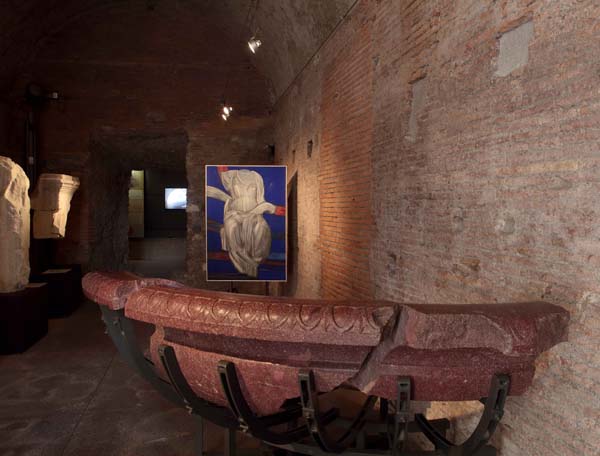 Reconstruction of the order from the façade of the porticoes in the Forum of Augustus made from original pieces and resin moulds
