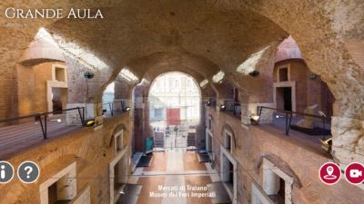 The virtual tour of the Mercati di Traiano Museo dei Fori Imperiali, accessible from all devices, offers a journey to discover the beauty of the heritage through a digital experience that goes beyond the spatial limits of almost the entire museum space. Thanks to special controls, it is possible to move virtually around the museum, read the explanatory panels of the rooms and works, zoom and turn the images around 360°, browse through photo galleries and videos and enjoy other contextual content. The "Don't miss" section, which contains a practical visual list of selected works or rooms, is a useful tool for those who do not know the museum and are visiting it for the first time: by clicking on " Terrazza panoramica", for example, the user is virtually transported to the terrace overlooking the Imperial Forum to enjoy an overall view of Trajan's Markets. The tour is also enriched by intelligent maps that follow the visitor as he or she moves from one room to another, indicating rooms or works not yet displayed. Finally, thanks to the latest generation of drones, it is possible to take flight and see rooms and works of art from above, enjoying an additional and unprecedented perspective of the visit.