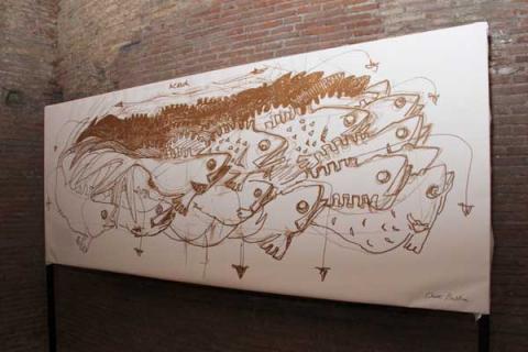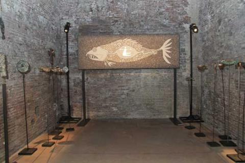 La mostra "MEDITERRANEUM" attraverso sculture, dipinti, disegni, grandi mosaici racconta il percorso artistico dell'artista ORESTE BALDINI intorno all'icona del "PESCE".