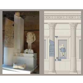 Ricomposizione dell’ordine della facciata dei portici del Foro di Augusto, con frammenti originali e calchi in resina