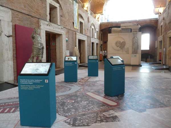 Ricomposizione dell’ordine della facciata dei portici del Foro di Augusto, con frammenti originali e calchi in resina