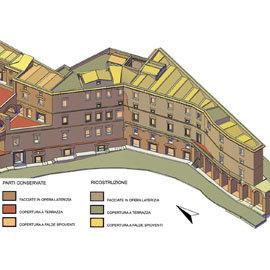 Ricostruzione della veduta assonometrica del Corpo Centrale da sudovest