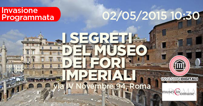Appuntamento sabato 2 maggio, dalle ore 10.30, per invadere e fare proprio il Museo dei Fori Imperiali nei Mercati di Traiano. Lo sguardo del pubblico è al centro dell’iniziativa, supportato dal curatore del Museo – Marina Milella - che, con la sua visione personale, potrà contribuire a questa costruzione collettiva e suggerire spunti e motivi d’ispirazione per le rielaborazioni. Un percorso complicato, ma particolarmente affascinante, con uno splendido panorama sull’architettura romana antica, per ricostruire l’aspetto e il significato degli edifici dei Fori Imperiali. Un viaggio alla scoperta dei “segreti” del Museo e del monumento, le tracce dell’attività degli uomini e dei loro pensieri lasciate sulle pietre e sui muri nella loro lunga storia insieme alla bellezza che sono riusciti a creare.