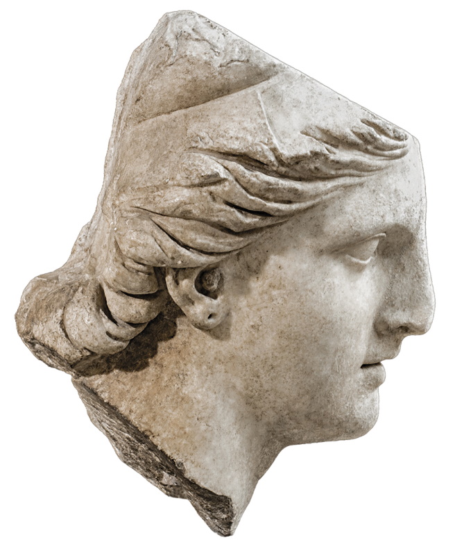 Frammento di scudo (clipeo) con testa di Giove (parte superiore).